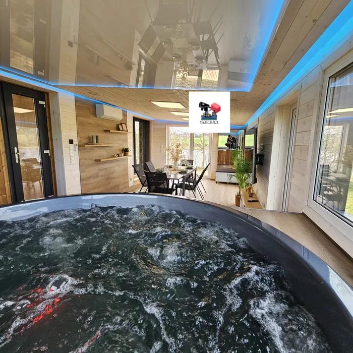 O segundo módulo é um espaço aberto com um jacuzzi.