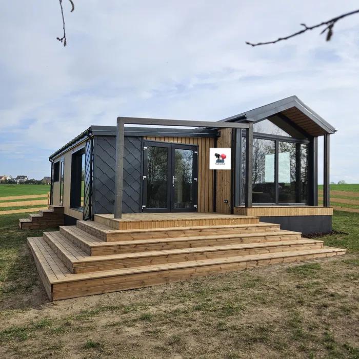 O primeiro módulo tem dois quartos, uma casa de banho, uma mezzanine e uma sala de estar com kitchenette.