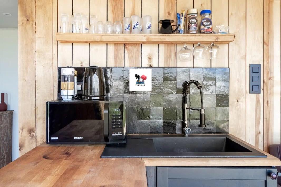 É um contentor de 40 pés com isolamento melhorado e revestimento de madeira para lhe dar um aspeto único. Foi construído de acordo com os requisitos do cliente.