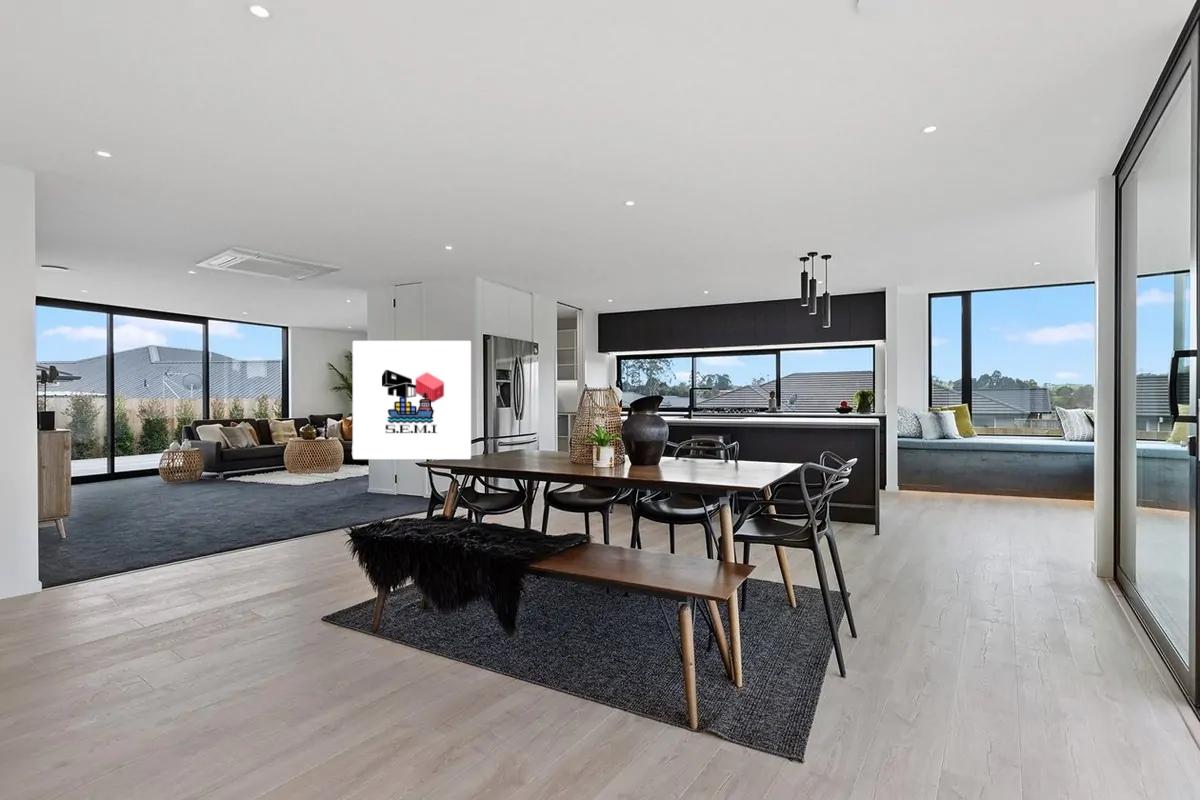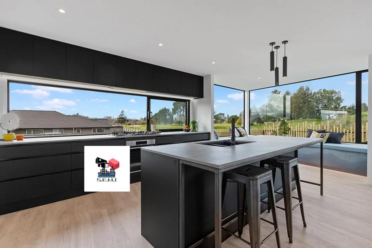 Os vidros e as portas do chão ao teto criam um fluxo interior-exterior perfeito e deixam entrar a luz. A estrutura de aço construída propositadamente confere resistência a elementos como a bancada da cozinha e a área de estar integrada.