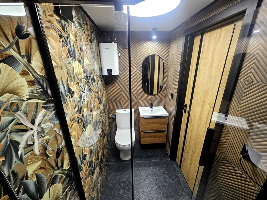 Salle de bain complète (douche, lavabo, WC, chauffe-eau)